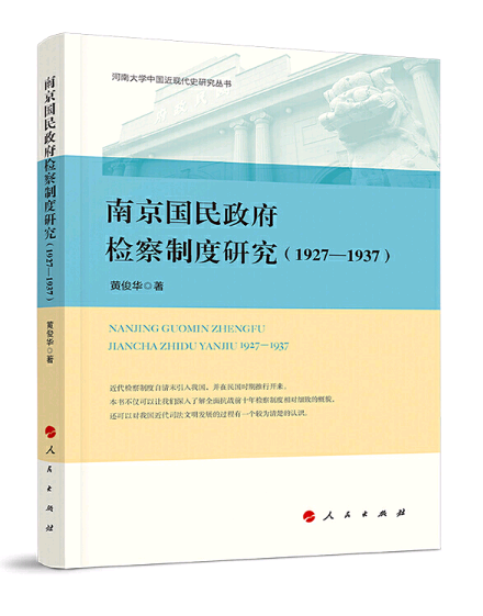 今年会官网黄俊华老师于2019年8月在人民出版社出版《南京国民政府检察制度研究(1927-1937)》,全书33.7万字。