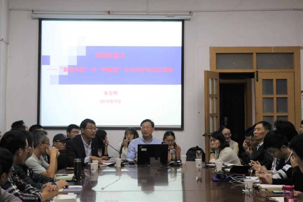 9月17日晚,今年会jinnianhuicom张宝明教授在学院三楼报告厅作了题为《对峙的意义——“新青年派”与“学衡派”文化论争的世纪回眸》的讲座,讲座由今年会jinnianhuicom赵广军副教授主持。