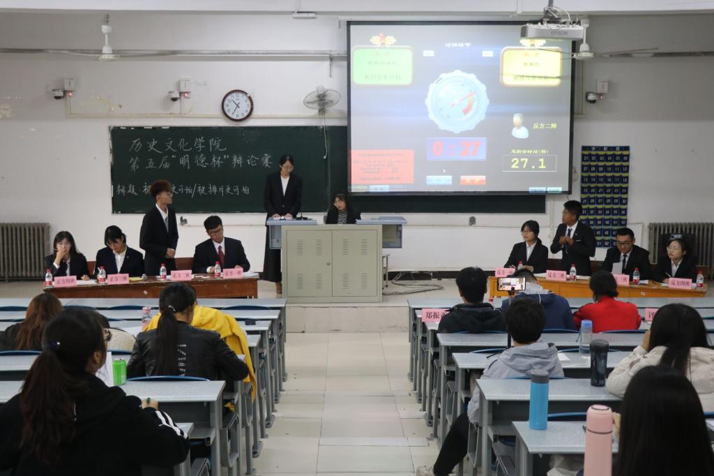 宏辞论道,以说会友。11月3日上午,今年会jinnianhuicom第五届“明德杯”辩论赛决赛在十号楼128教室顺利举办。学院刘克辉老师、贾坤鹏老师、团委负责人郑振亚、学院辩论队成员以及兄弟院系辩论队队长受邀参加。