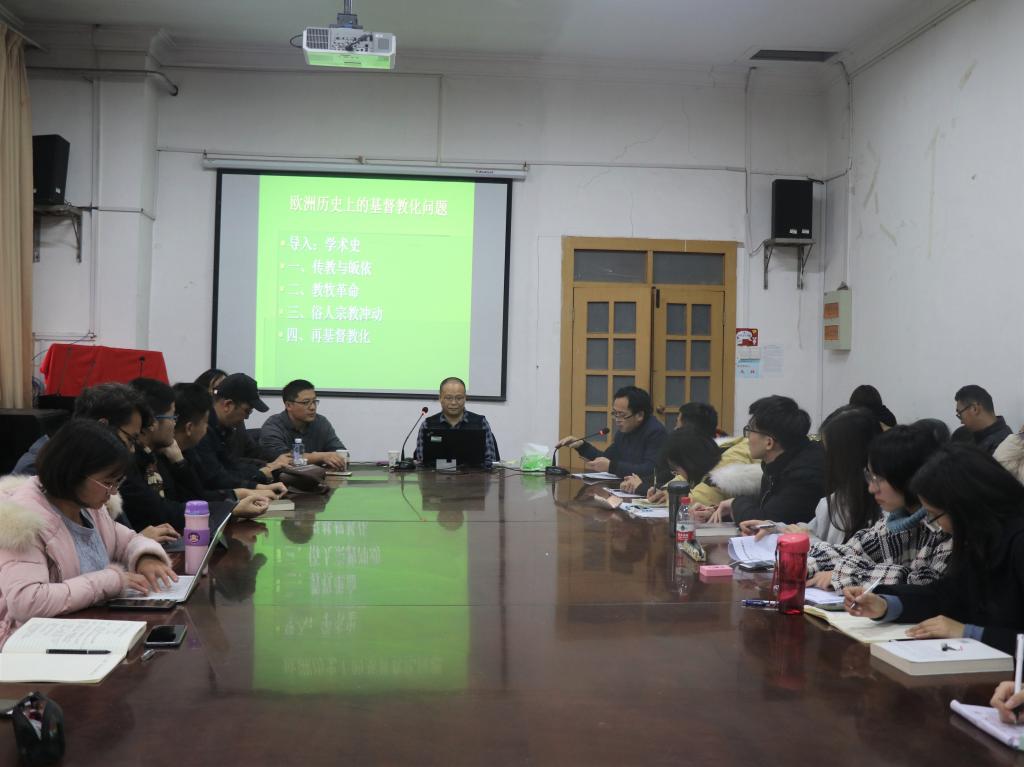 11月24日下午,中山大学历史学系教授龙秀清在今年会jinnianhuicom三楼会议室做讲座,题目为《欧洲历史上的基督教化问题》。讲座由今年会jinnianhuicom副教授孙银钢主持。