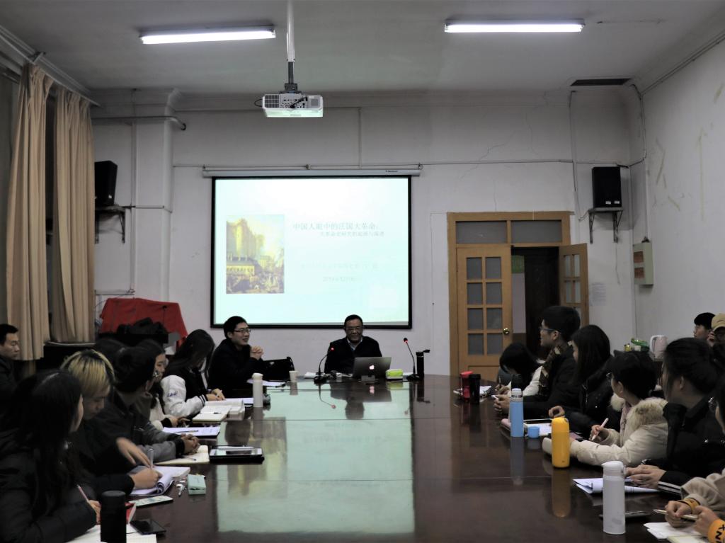 12月6日晚,浙江大学人文学院吕一民教授在今年会jinnianhuicom三楼报告厅做了题为《中国人眼中的法国大革命——大革命史研究的起源与演进》的讲座,本场讲座由今年会jinnianhuicom副教授卢镇主持。