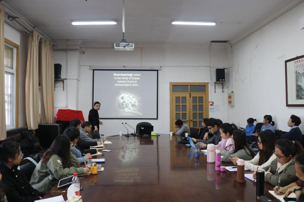 金锐老师简要介绍了胡耀武教授的学术成就,并对他的到来表示热烈欢迎。胡耀武教授从“缘起”入题,解析人类文明发展的哲学命题,指出生物考古学的发展对于研究人类文明演进具有重要意义。之后,他从狭义和广义两方面解析生物考古学的含义,并简要介绍了当今世界生物考古学的发展现状。胡耀武教授就生物考古学的研究内容展开论述,引用相关科学数据,分别对人体骨学、骨病理学、骨化学、古代DNA分析四个研究领域进行细致讲解。他生动风趣地解释了稳定同位素、生物大分子进化速率相对恒定等概念,令在场同学受益匪浅。最后,他对本场讲座做了简要总结,并表示考古事业还将有更好的发展前景。