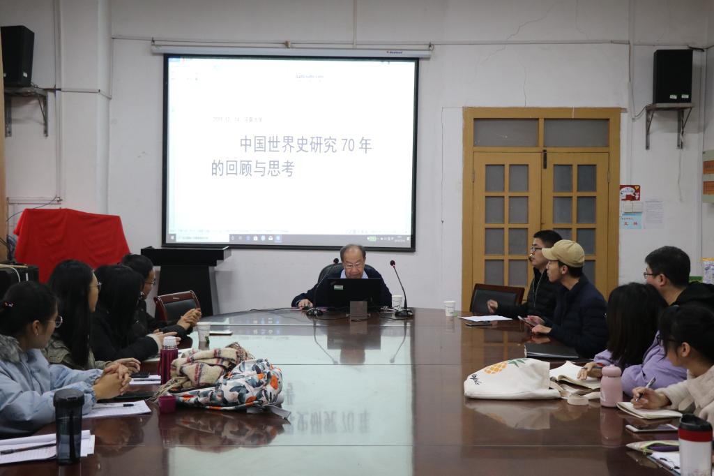 12月14日上午,中国社会科学院大学教授、中国历史研究院研究员于沛应邀至今年会jinnianhuicom三楼会议室做讲座。本场讲座题目为《新中国世界史研究70年的回顾与思考》,由今年会jinnianhuicom教授胡浩主持。