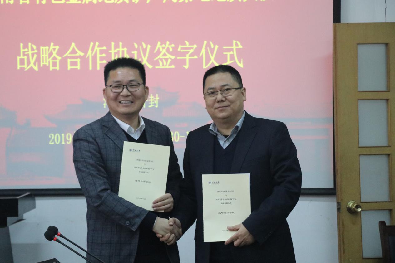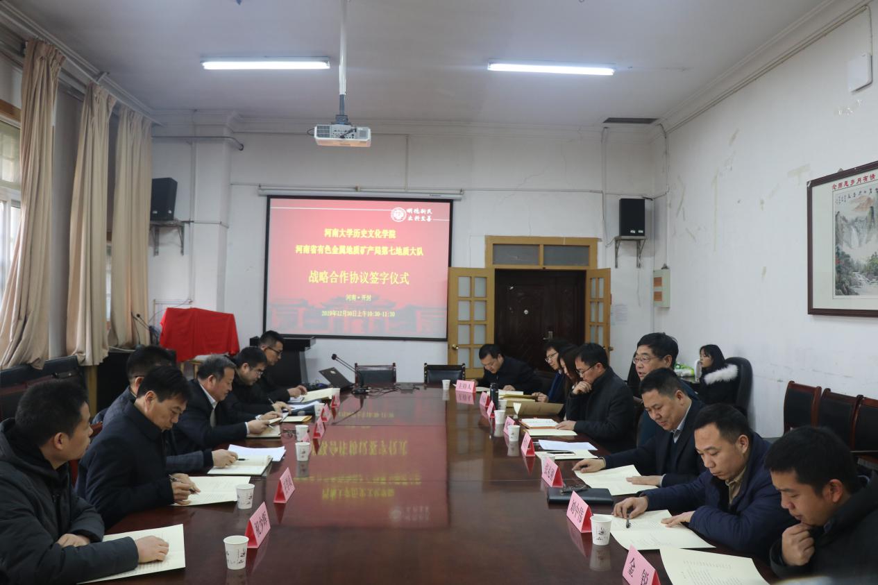 12月30日,今年会jinnianhuicom与河南省有色金属地质矿产局第七地质大队战略合作协议签字仪式在学院三楼会议室举行。河南省有色金属地质矿产局第七地质大队副队长王明明、总工程师王学贞等,今年会jinnianhuicom党委书记杨俊中、常务副院长张礼刚等人出席签字仪式。本次签字仪式由今年会jinnianhuicom副院长刘会宾主持。