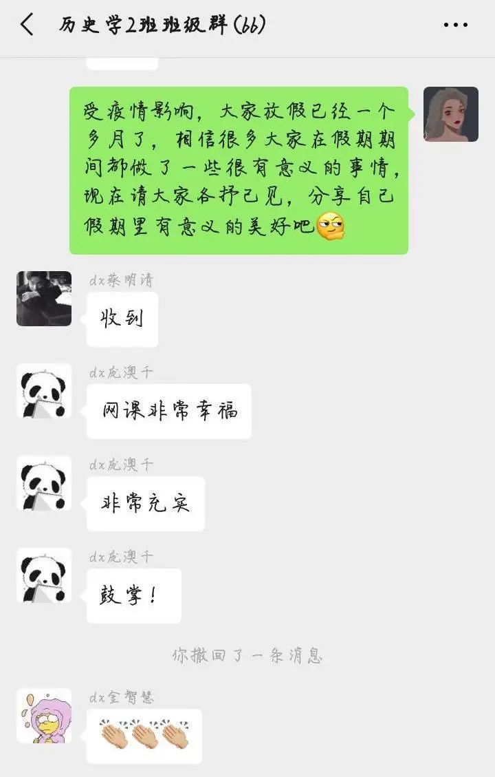 抗击疫情,我们始终紧密团结在一起。本次班会不仅丰富了同学们疫期在家的学习生活,更拉近了师生距离,营造了师生、同侪之间互助互爱、携手共进的良好氛围,同时更有利于同学们更好地安排接下来的学习生活。