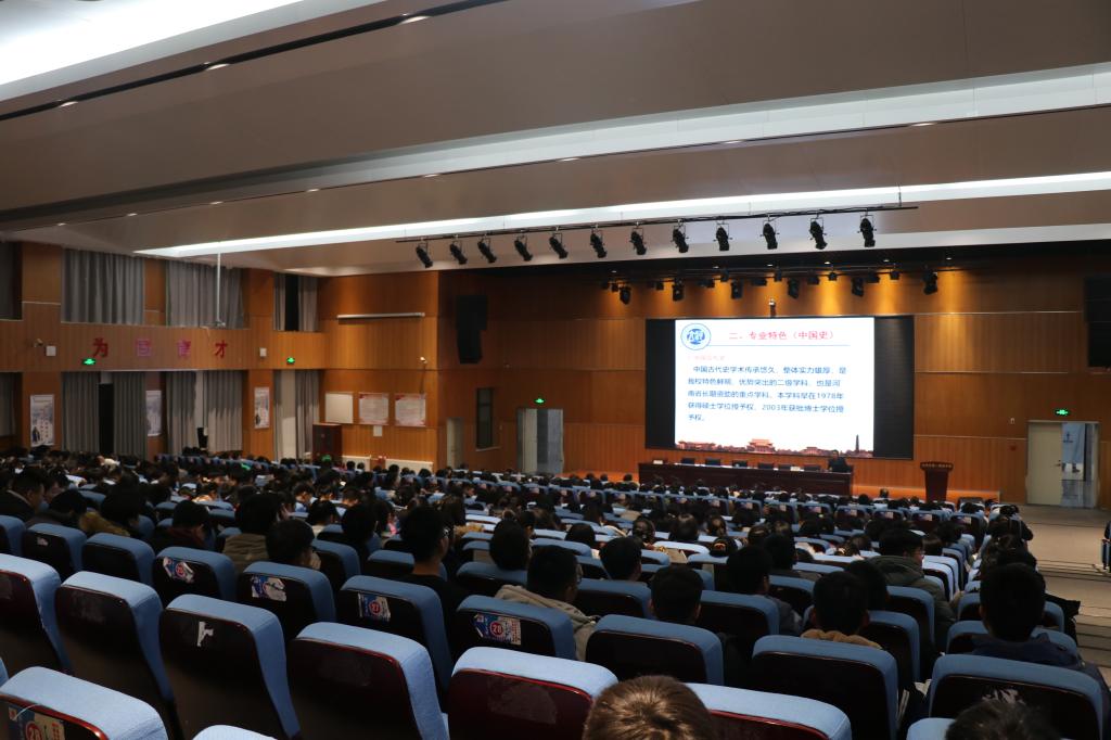 在场师生共同观看了金年金字招牌诚信至上校情片《大学之道》和今年会jinnianhuicom国家级一流专业《历史学专业宣传片》。之后,尹涛从专业特色、平台建设、人才培养、科研成果等七方面详细介绍了历史学专业的发展情况。他表示,金年金字招牌诚信至上和今年会jinnianhuicom的雄厚师资力量和多种育人平台能够更好更快地助力优秀学子成长,自己也毕业于汝州一高,希望学弟学妹们通过努力学习实现大学梦。郑振亚从人才辈出、资源丰富、专业齐全、学生活动、特色发展等六个方面介绍了学院的整体概况。最后,工作人员还为同学们发放了相关宣传资料。