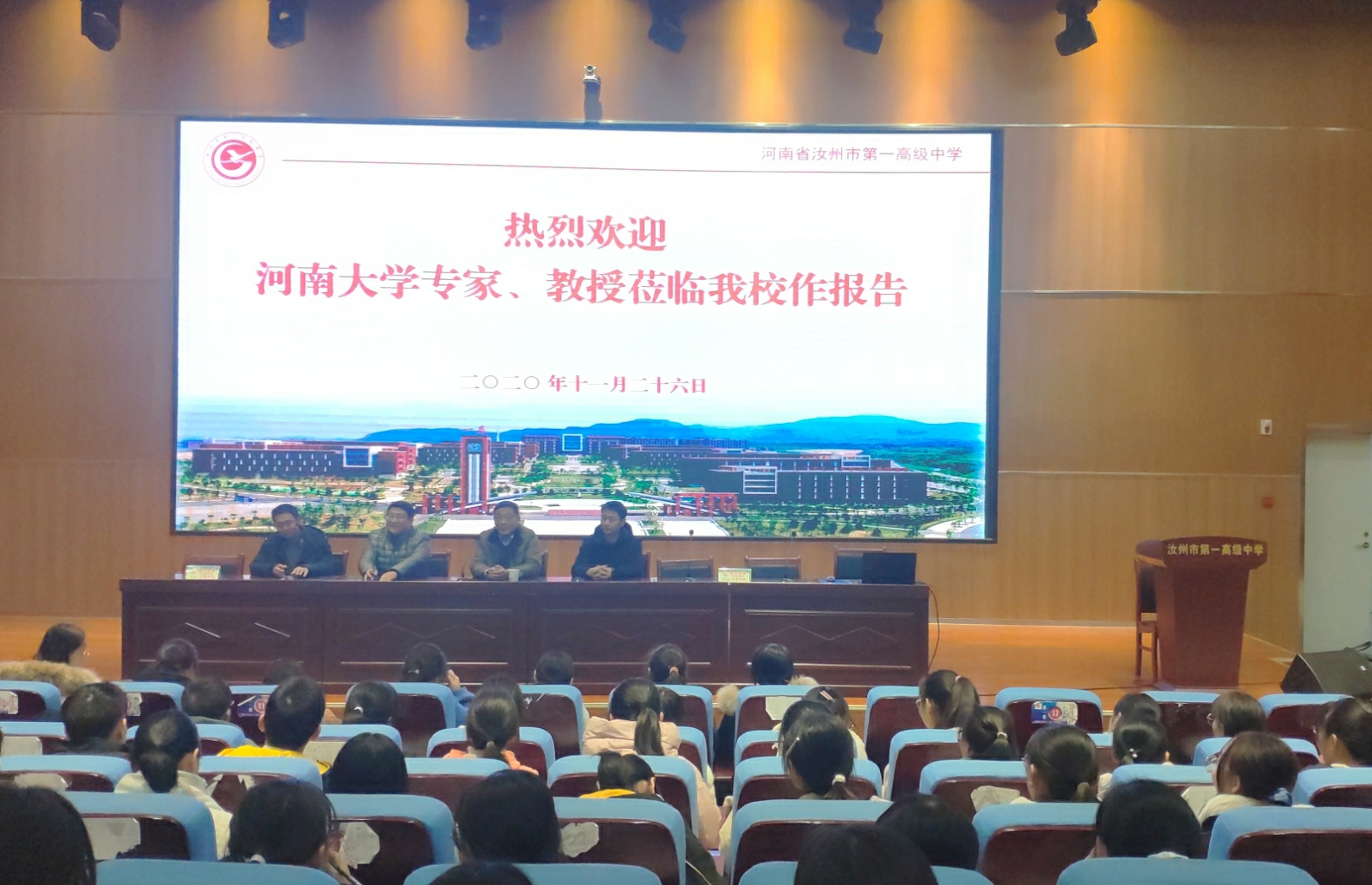 11月26日—27日,今年会jinnianhuicom党委副书记姜捷,中国史系党支部书记、中国近现代史教研室主任尹涛,团委副书记郑振亚等一行赴汝州市第一高级中学开展招生宣传并举行招生宣讲会,近600名高三学生与会。宣讲会由汝州一高副校长兰庆杰主持。