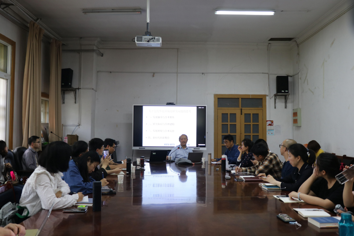 王先明由区域史的发展脉络与学术聚焦谈起,对我国区域史的发展进行讲解。他强调了近代以来华北地区区域史研究成果丰硕,成突飞猛进的增长趋势,并对不同时期关于华北地区的论文数量、不同主题进行分析,指出近代华北地区区域史的研究以乡村问题、城市史、政治与革命史为主要聚焦点。王先明就其研究取向与理学建构讲到,在以华北区域史命名的各种论题之中,不应否认其价值,它们聚焦研究论题,拓展研究思路。但在今天看来,华北区域史学科与学理体系的建立甚少关联,对于学理体系缺乏自觉的认识。王先明通过列举两本相关著作,使同学们更加直观地理解与感受到何为学理追求。紧接着,他提出了研究面临的发展困境并进行了学术反思。王先明认为,目前研究中存在定义中的华北区域与实际研究中的华北内容不符合、实际研究工作中显示出历史学界对区域概念认识模糊不清,导致研究上的断层等问题。他强调目前的共同问题为区域史学理与学科的构建,并且提出我们应当反思许多著作与研究不过是中国通史的地方化、区域史研究中的碎片化等问题。最后,王先明对此新时代的发展提出了新期待,期望在研究取向上进行根本调整,解决现有问题,实现时代性的进步。