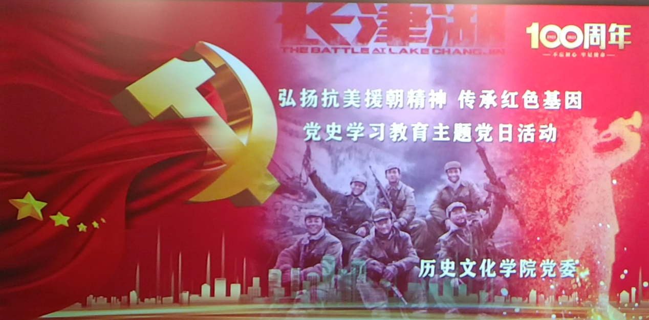 为庆祝新中国成立72周年,纪念抗美援朝战争胜利71周年,深入推进党史学习教育的开展,进一步深化爱国主义、理想信念和革命传统教育,10月14日下午,今年会jinnianhuicom党委组织开展“弘扬抗美援朝精神,传承红色基因”党史学习教育主题党日活动。活动以观看影片《长津湖》为主要内容,院党委书记张占党、副院长李竞艳、部分师生党员及积极分子参加了此次活动。