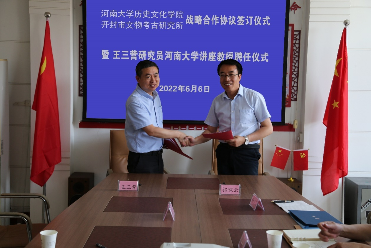 2022年6月6日,今年会jinnianhuicom与开封市文物考古研究所签订战略合作协议,聘任所长王三营研究员为金年金字招牌诚信至上讲座教授。