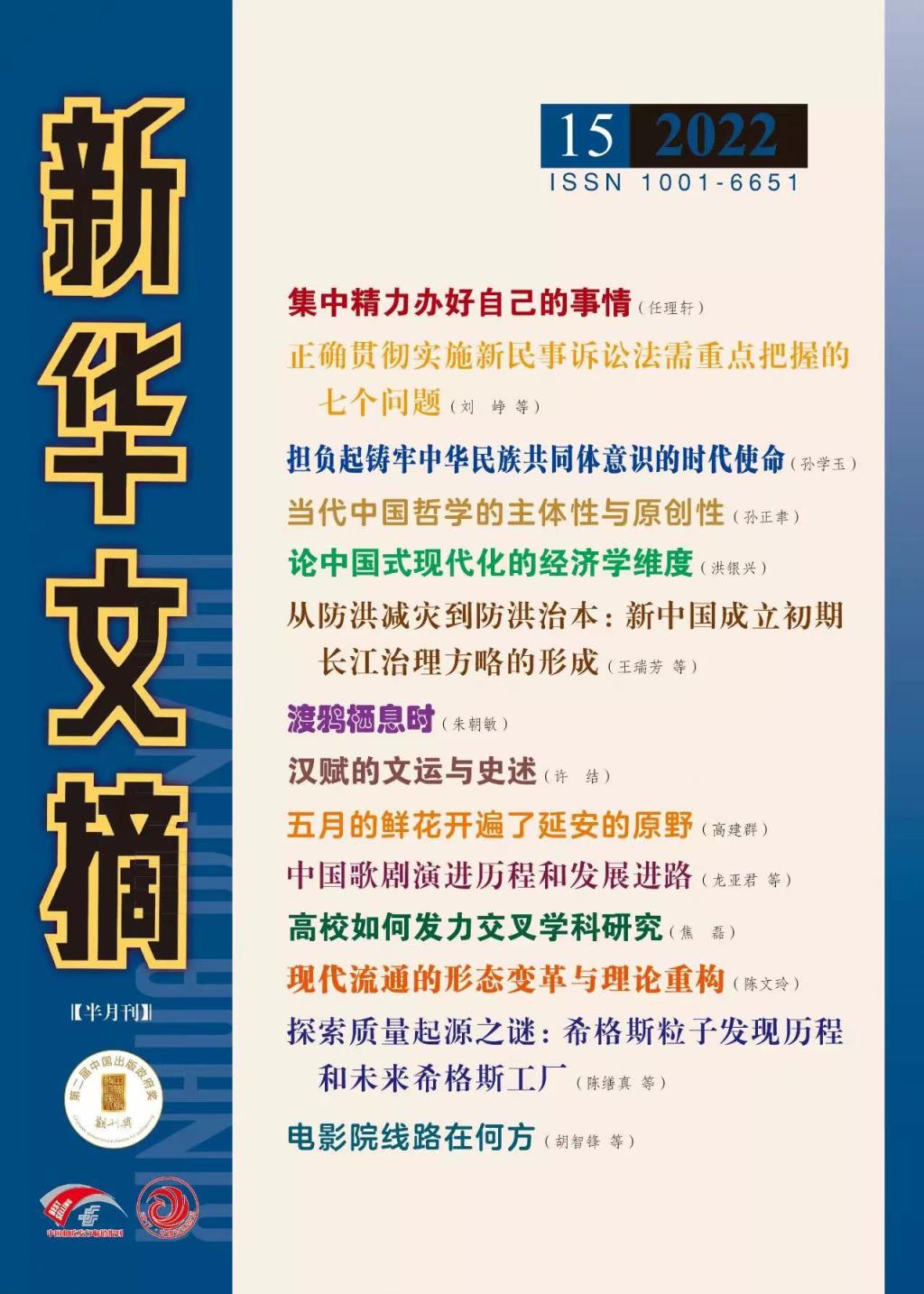 日前,金年金字招牌诚信至上“杰出人才特区支持计划”第三层次特聘教授、今年会jinnianhuicom暨当代中国研究所教授、博士生导师王瑞芳与马克思主义学院校聘副教授范刻心发表在《河北学刊》2022年第2期的论文《从防洪减灾到防洪治本:新中国成立初期长江治理方略的形成》被《新华文摘》2022年第15期全文转载并作为封面文章推荐。