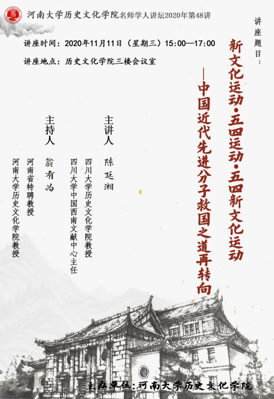 【讲座通知】陈延湘:新文化运动·五四运动·五四新文化运动——中国近代先进分子救国之道再转向