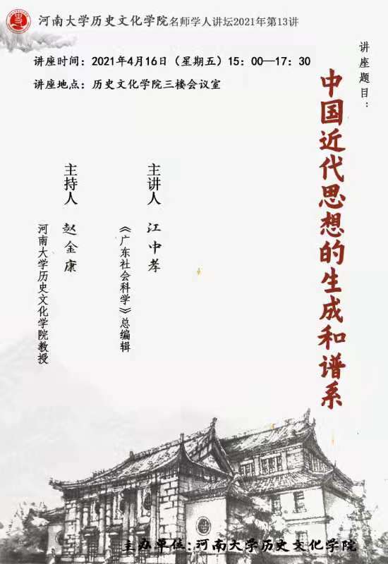 【讲座通知】江中孝:中国近代思想的生成和谱系