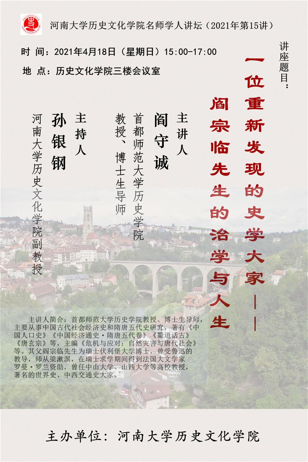【讲座通知】阎守诚:一位重新发现的史学大家--阎宗临先生的治学与人生