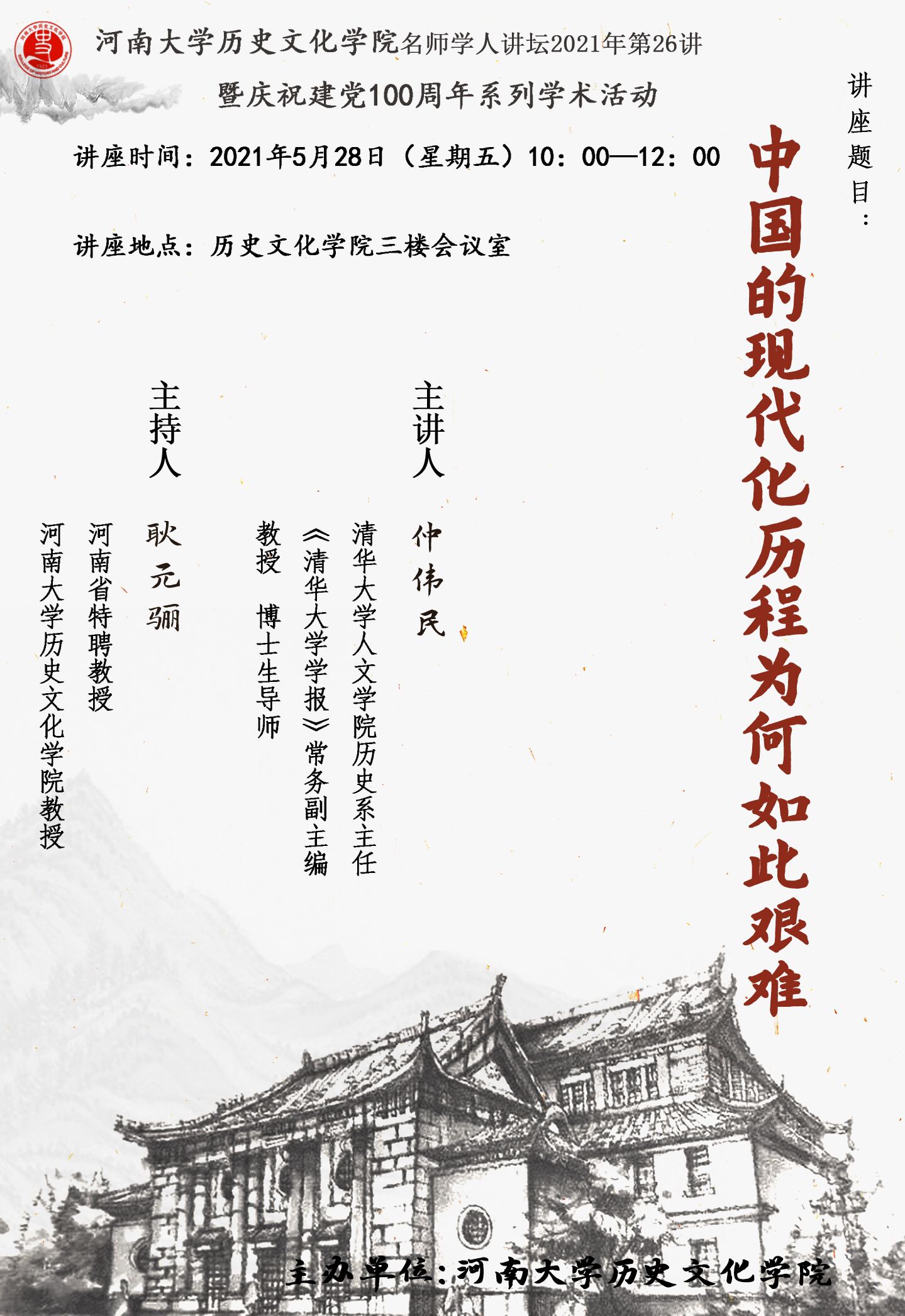 【讲座通知】仲伟民:中国的现代化历程为何如此艰难