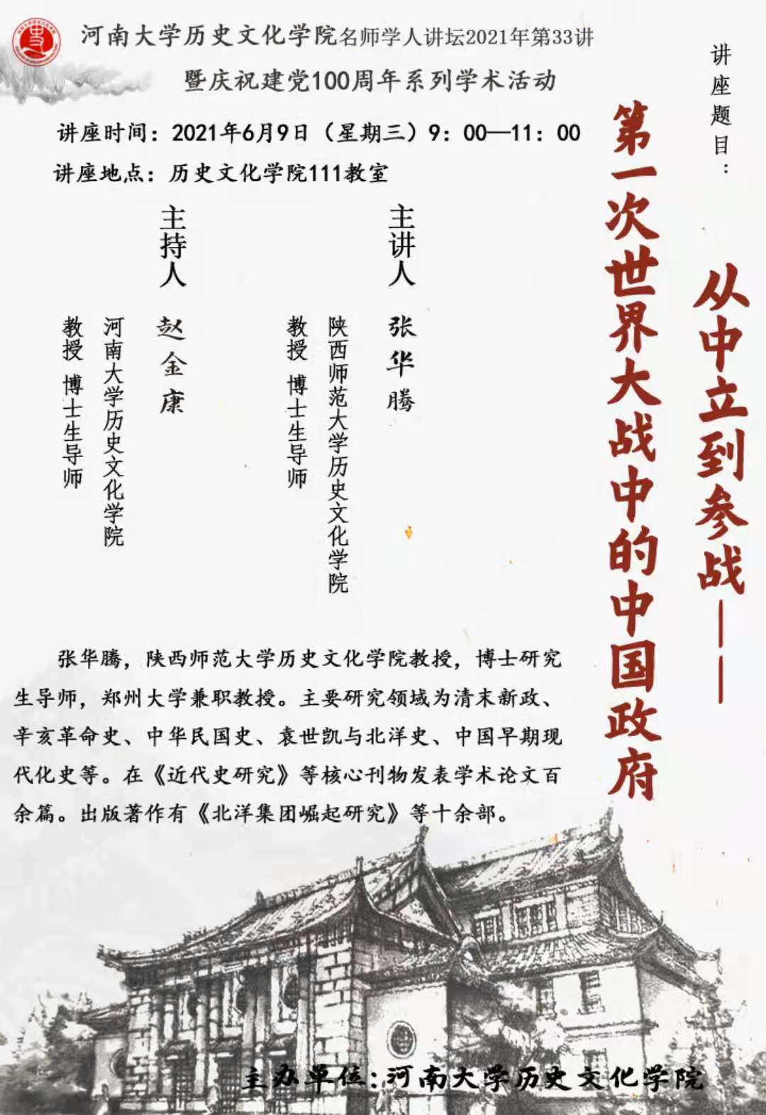 【讲座通知】张华腾:从中立到参战——第一次世界大战中的中国政府