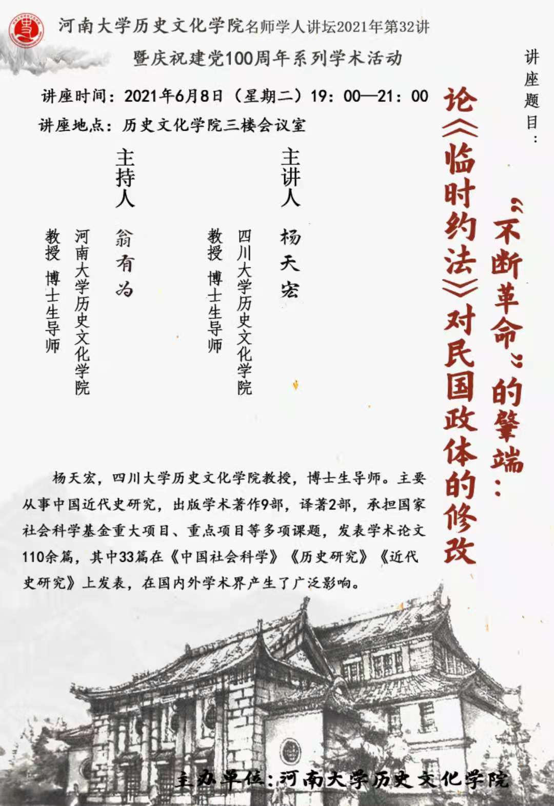 【讲座通知】杨天宏:“不断革命”的肇端:论《临时约法》对民国政体的修改