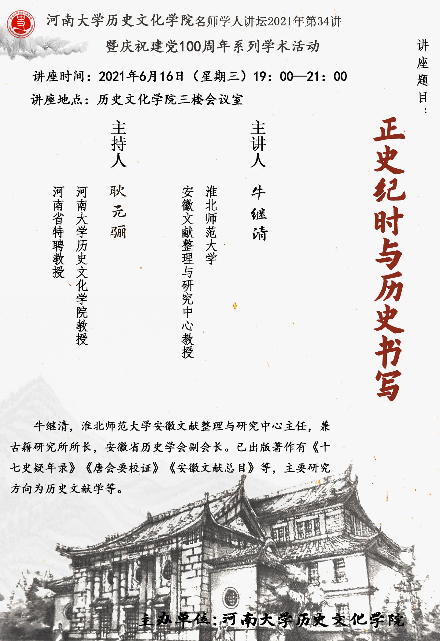 【讲座通知】牛继清:正史纪时与历史书写