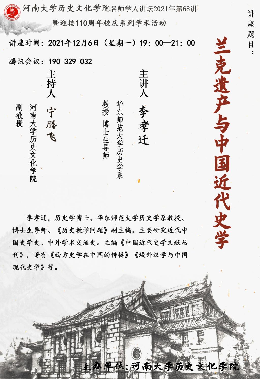 【讲座通知】李孝迁:兰克遗产与中国近代史学
