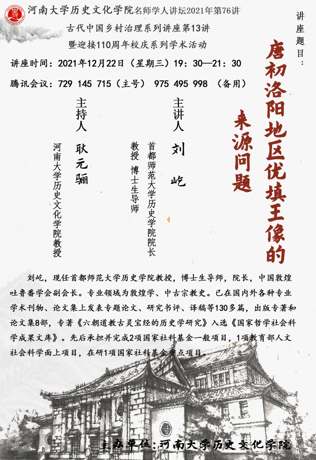【讲座通知】刘屹:唐初洛阳地区优填王像的来源问题
