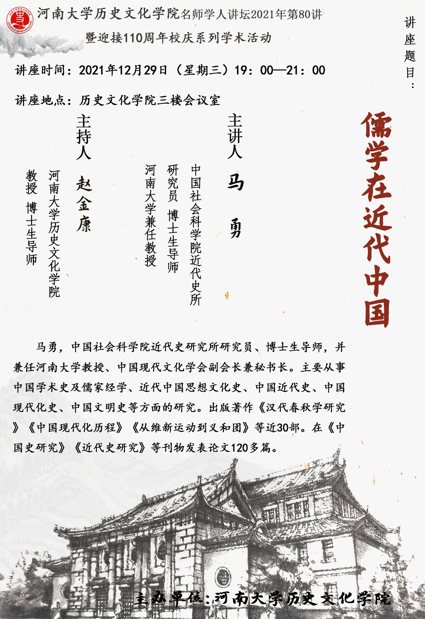 【讲座通知】马勇:儒学在近代中国