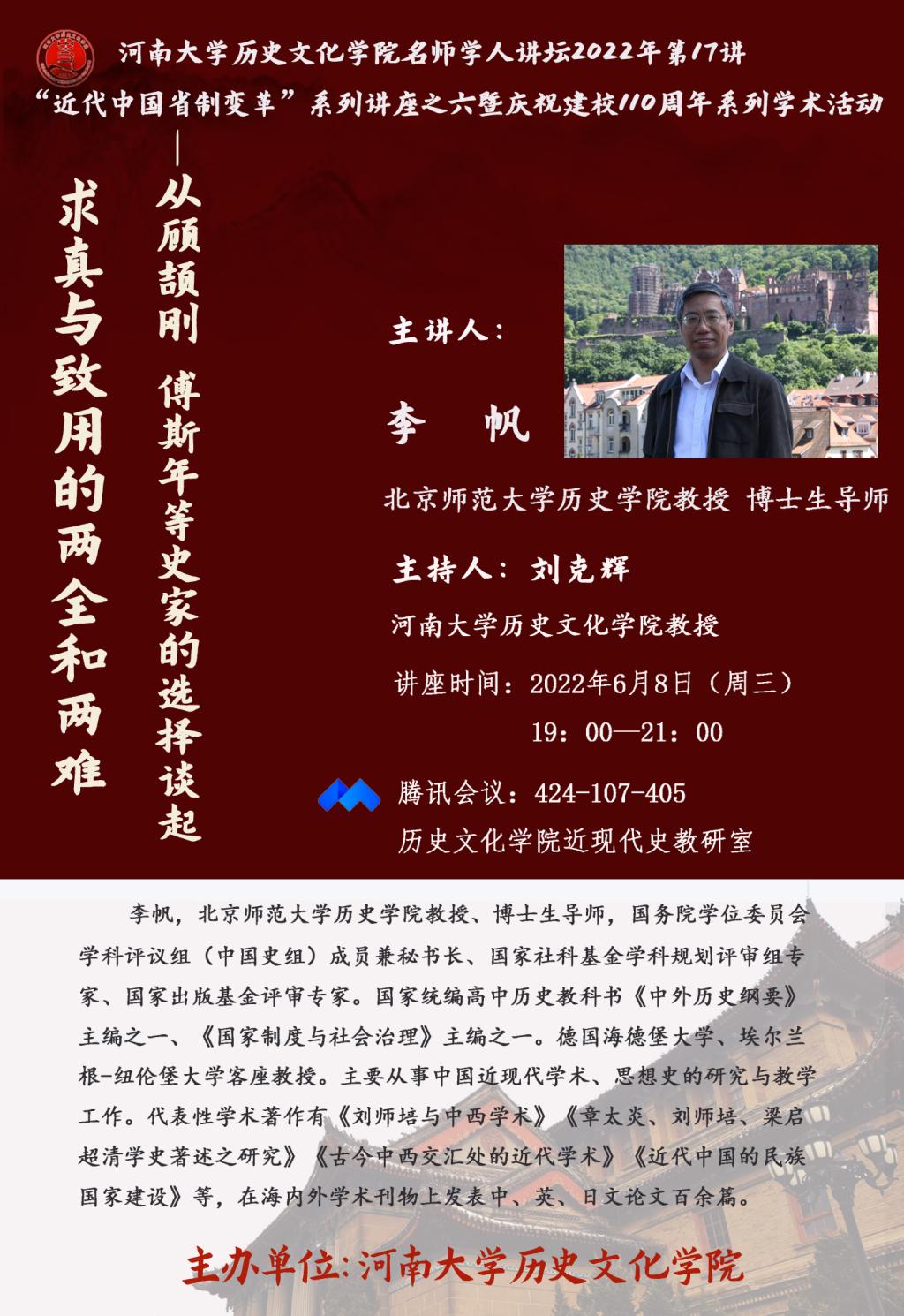 【讲座通知】“近代中国省制变革”系列讲座(6场)