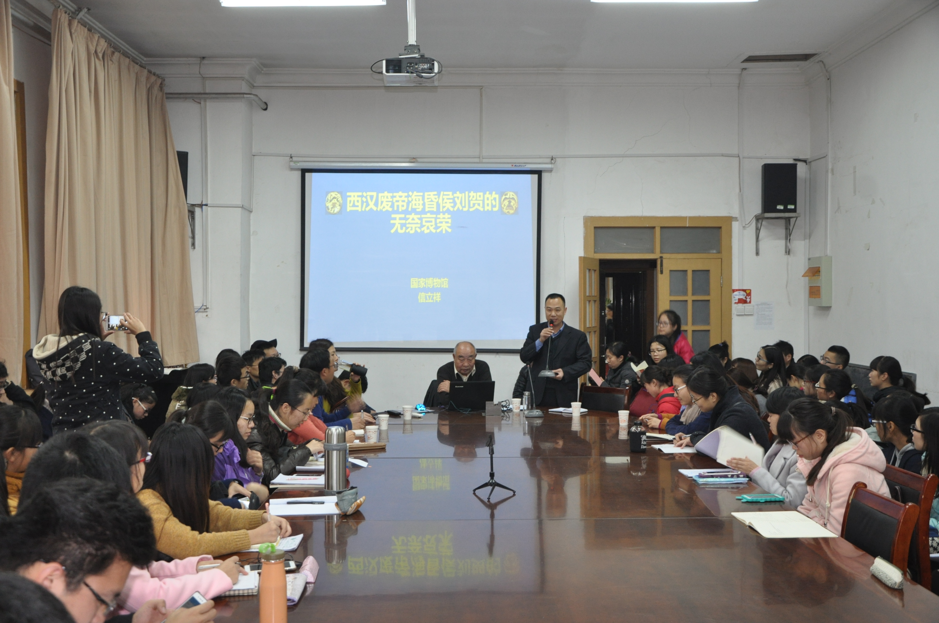 11月17日下午,国家博物馆研究员、南昌海昏侯墓考古专家组组长信立祥莅临我校,在今年会jinnianhuicom三楼会议室向我校师生做题为《西汉废帝刘贺的无奈衰荣》演讲。讲座由考古文博系刘中伟博士主持,现场氛围火爆,座无虚席。