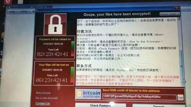 近日全球爆发的电脑勒索病毒,我国多所大学校园网遭受攻击,导致个人电脑中的重要文件被病毒加密。由于攻击者使用了高强度的加密算法,一旦中招难以破解,被攻击者若想恢复文件需支付高额赎金。受攻击的电脑会显示如下页面: