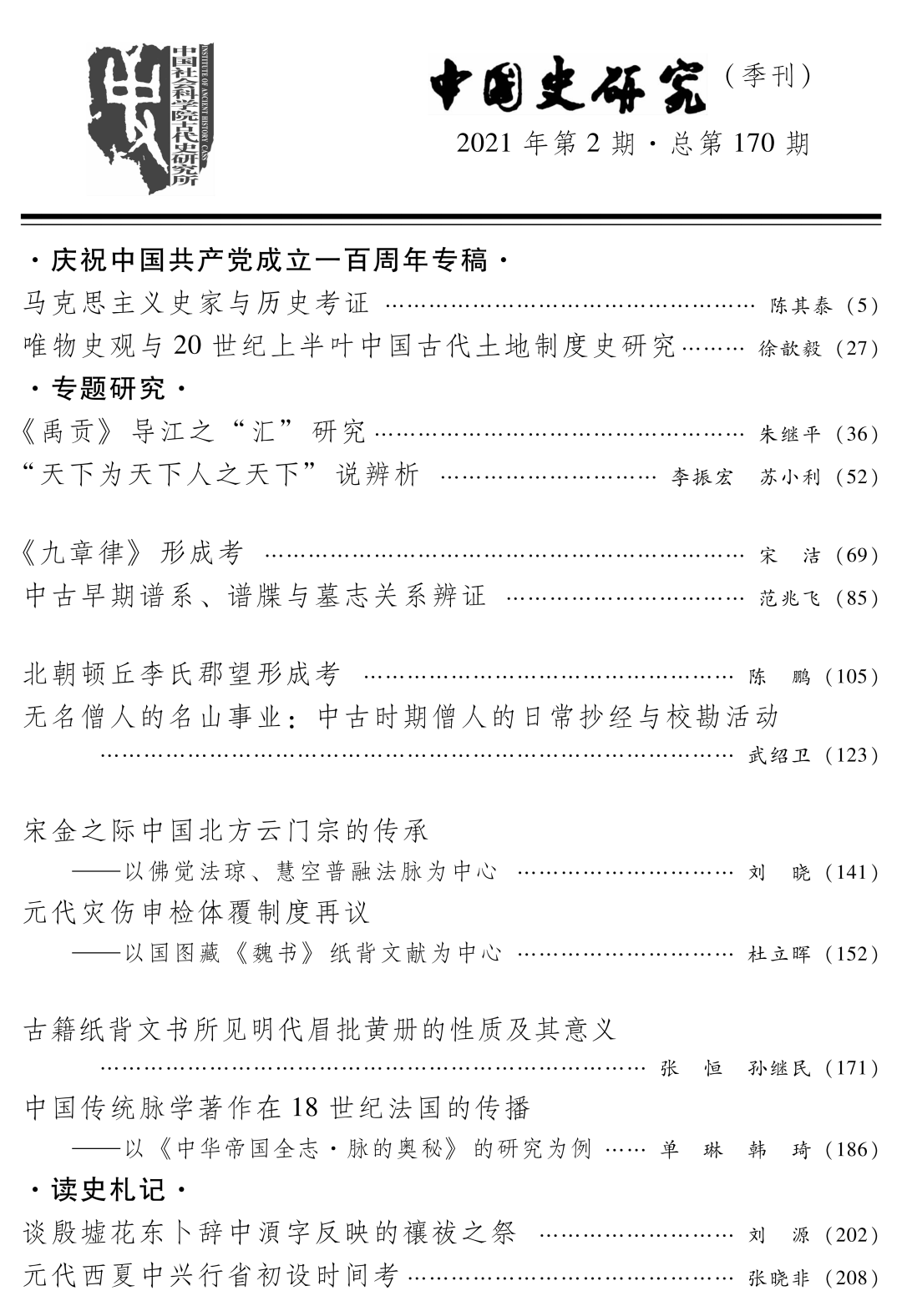 近日,学院青年教师宋洁在《中国史研究》2021年第2期发表专题论文《<九章律>形成考》。