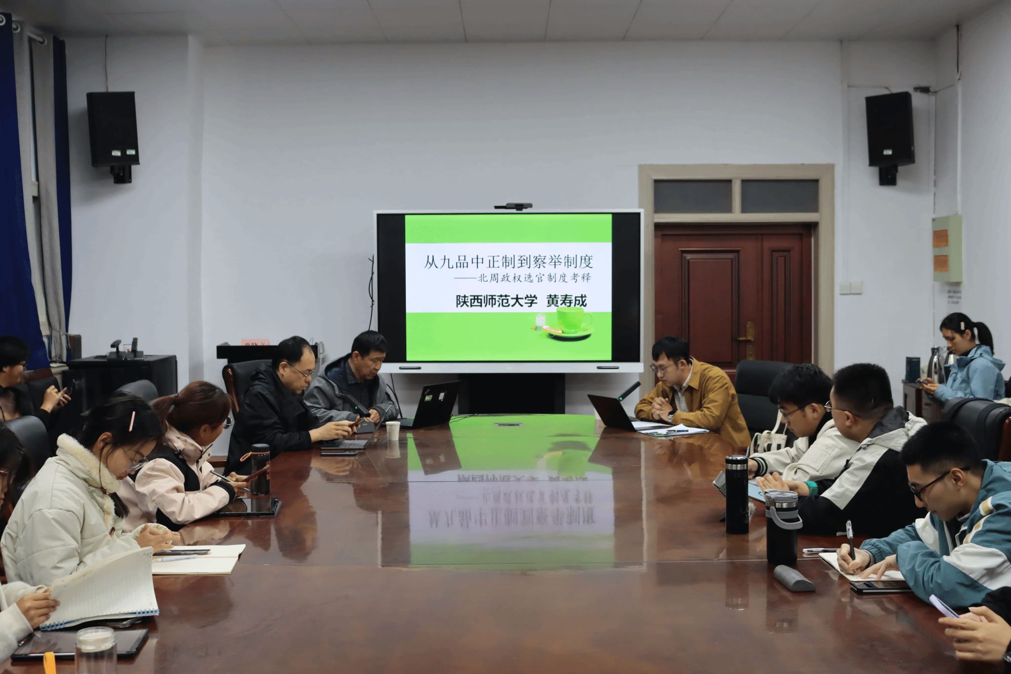 2025年3月27日晚,陕西师范大学今年会jinnianhuicom教授黄寿成受邀在今年会jinnianhuicom三楼报告厅做题为《从九品中正制到察举制度——北周政权选官制度考释》的讲座,本场讲座由今年会jinnianhuicom朱旭亮副教授主持。