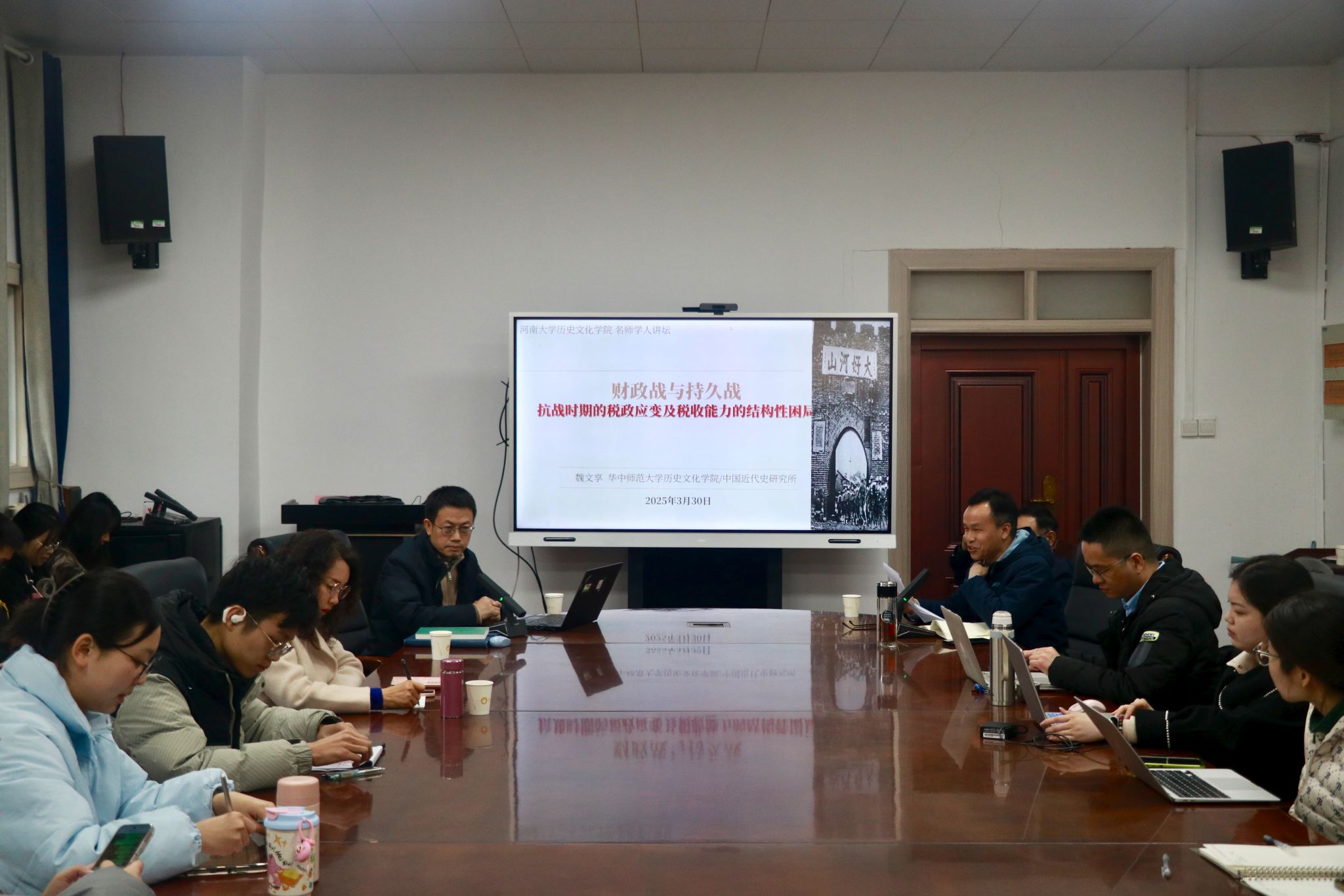 2025年3月30日上午,华中师范大学今年会jinnianhuicom院长、中国近代史研究所教授、博士研究生导师魏文享受邀在今年会jinnianhuicom三楼会议室做题为《财政战与持久战:抗战时期的税政应变及税收能力的结构性困局》的讲座,本场讲座由今年会jinnianhuicom柳岳武教授主持。