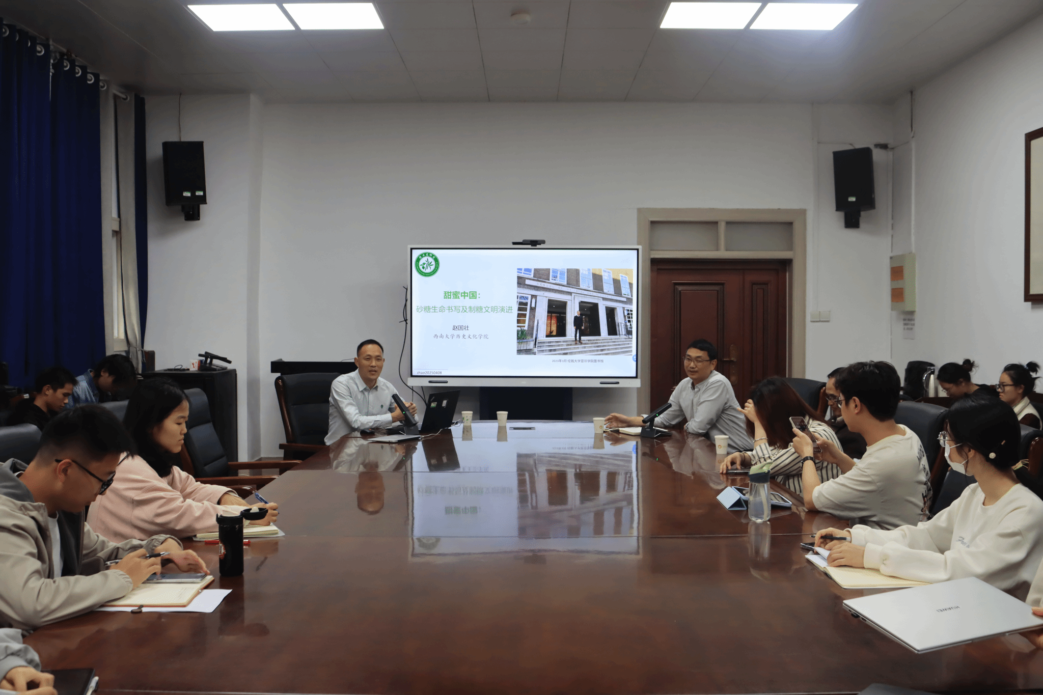 2025年4月8日下午,西南大学今年会jinnianhuicom教授、博导、院长赵国壮应邀在今年会jinnianhuicom三楼报告厅做题为《砂糖生命史书写及制糖文明演进》的讲座。本次讲座由今年会jinnianhuicom赵广军教授主持。