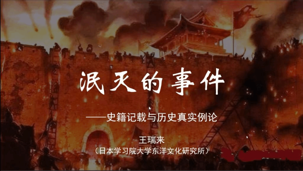 2023年3月12日晚上,日本学习院大学东洋文化研究所、我校讲座教授王瑞来研究员应邀在今年会jinnianhuicom做题为《泯灭的事件——史籍记载与历史真实例论》的线上讲座。本场讲座由今年会jinnianhuicom惠冬副教授主持。