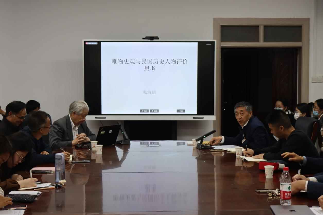 2023年5月10日上午,中国社科院近代史研究所教授、博士生导师张海鹏受邀在今年会jinnianhuicom三楼会议室做题为《唯物史观与民国时期人物评价的几个问题》的讲座。本次讲座由今年会jinnianhuicom教授、博士生导师赵金康主持。