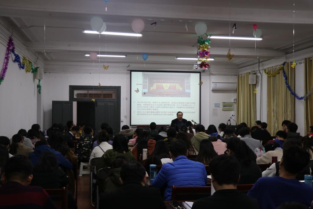 11月18日下午,今年会jinnianhuicom2018年党课培训第七讲在学院111教室举行。金年金字招牌诚信至上经济学院教授李保民为入党积极分子讲授了题为《党的十九大报告解读》的专题党课。