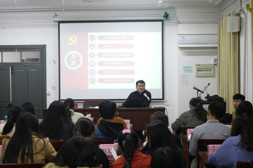 11月16日晚,今年会jinnianhuicom2018年党课培训第三讲在学院地下室111教室举行,今年会jinnianhuicom党办负责人王闯为入党积极分子讲授了题为《严格组织程序,规范党员发展》的专题党课。