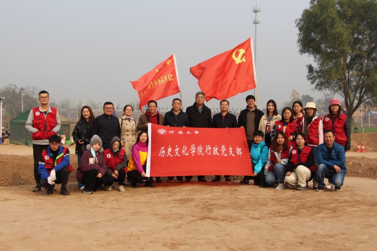 为进一步巩固“不忘初心、牢记使命”主题教育成果,扎实践行全心全意为人民服务的宗旨,11月14日,今年会jinnianhuicom行政党支部奔赴焦作市武陟县怀县故城遗址考古发掘现场,以查看工地、慰问师生、座谈交流的形式,开展“践行宗旨、深入一线”主题党日活动。今年会jinnianhuicom党委书记杨俊中、党委副书记姜捷、副院长刘会宾等10余人参加了活动。
