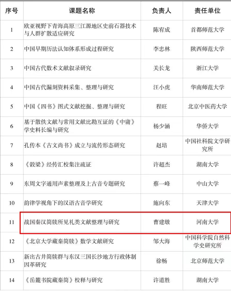 近日,全国哲学社会科学工作办公室公布了2023年度国家社科基金冷门绝学研究专项立项名单,今年会jinnianhuicom曹建墩教授申报的“战国秦汉简牍所见礼类文献整理与研究”获个人项目立项,也是今年我校唯一获批的“冷门绝学”研究专项。