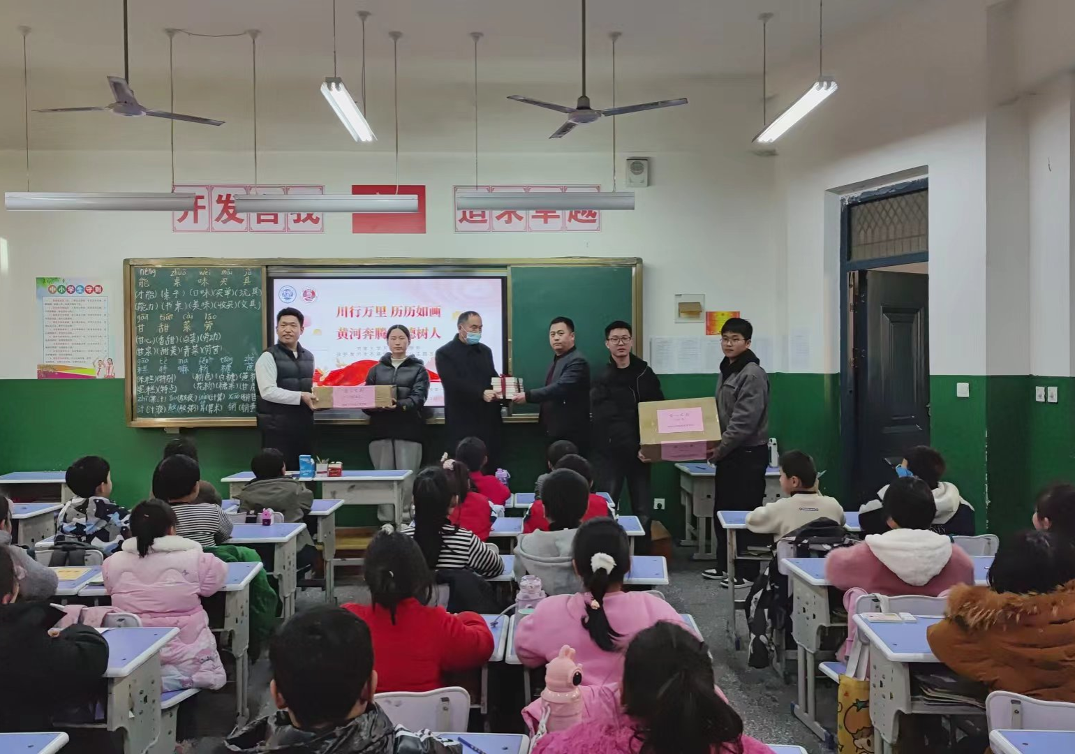 黄河故事久弥新,历史命脉持延今。师生们来到活动最后一站封丘县荆隆宫乡新区启航小学,围绕教育引导师生爱护母亲河,营造尊法守法、爱河护河的浓厚氛围开展“普法进校园宣讲,讲好黄河历史小课堂”活动并为小学捐赠爱心文具150套。师生志愿者分为六组进入二年级、四年级课堂,给小朋友们讲解黄河保护法重点条文、汛期如何保护自身安全、生态环境保护的重要意义,并为同学们介绍了金年金字招牌诚信至上。期间,学院师生志愿者与小朋友们互动积极,有问有答,小朋友们表示要从小做起,好好学习文化知识,以实际行动保护母亲河。