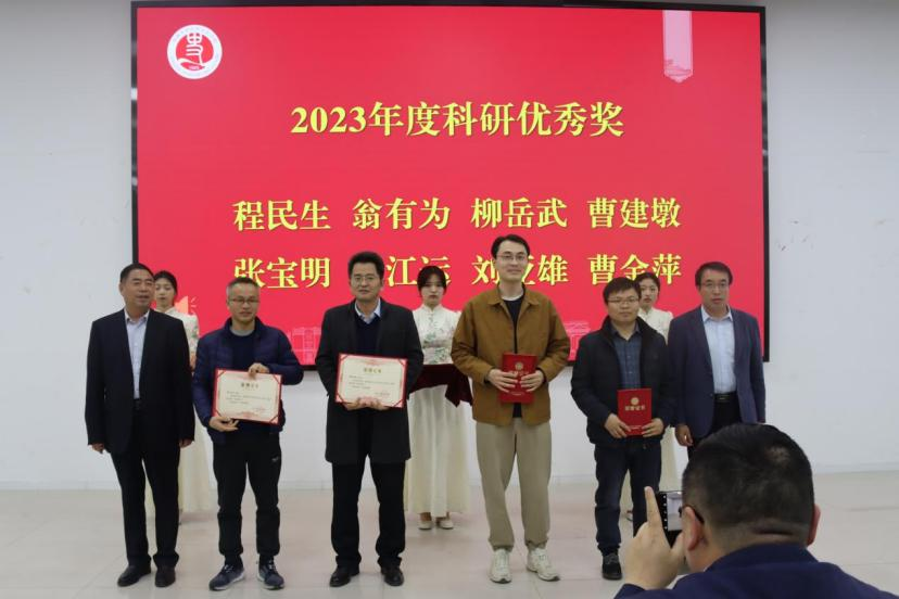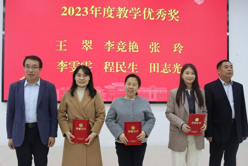 副院长胡浩、闵祥鹏、陈升远分别宣读《今年会jinnianhuicom关于表彰2023年度科研优秀奖的决定》《今年会jinnianhuicom关于表彰2023年度教学优秀奖的决定》《今年会jinnianhuicom关于表彰2021年—2023年人才引进工作先进个人的决定》文件,受表彰教师依次上台领奖。