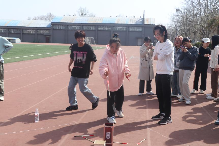 此次古代运动会共设置七个运动项目:木射、踢花毽、斗拐、投壶、行军布阵、步打球和牵钩。木射项目中,参赛选手凝神聚气,球无虚发,一个个木桩迅速倒地。而在踢花毽比赛中,同学们身姿矫健,毽飞舞间展现出优美的技艺与灵活的身姿。斗拐比赛中,选手们奋力拼搏,挥拐破风,力争取得胜利。
