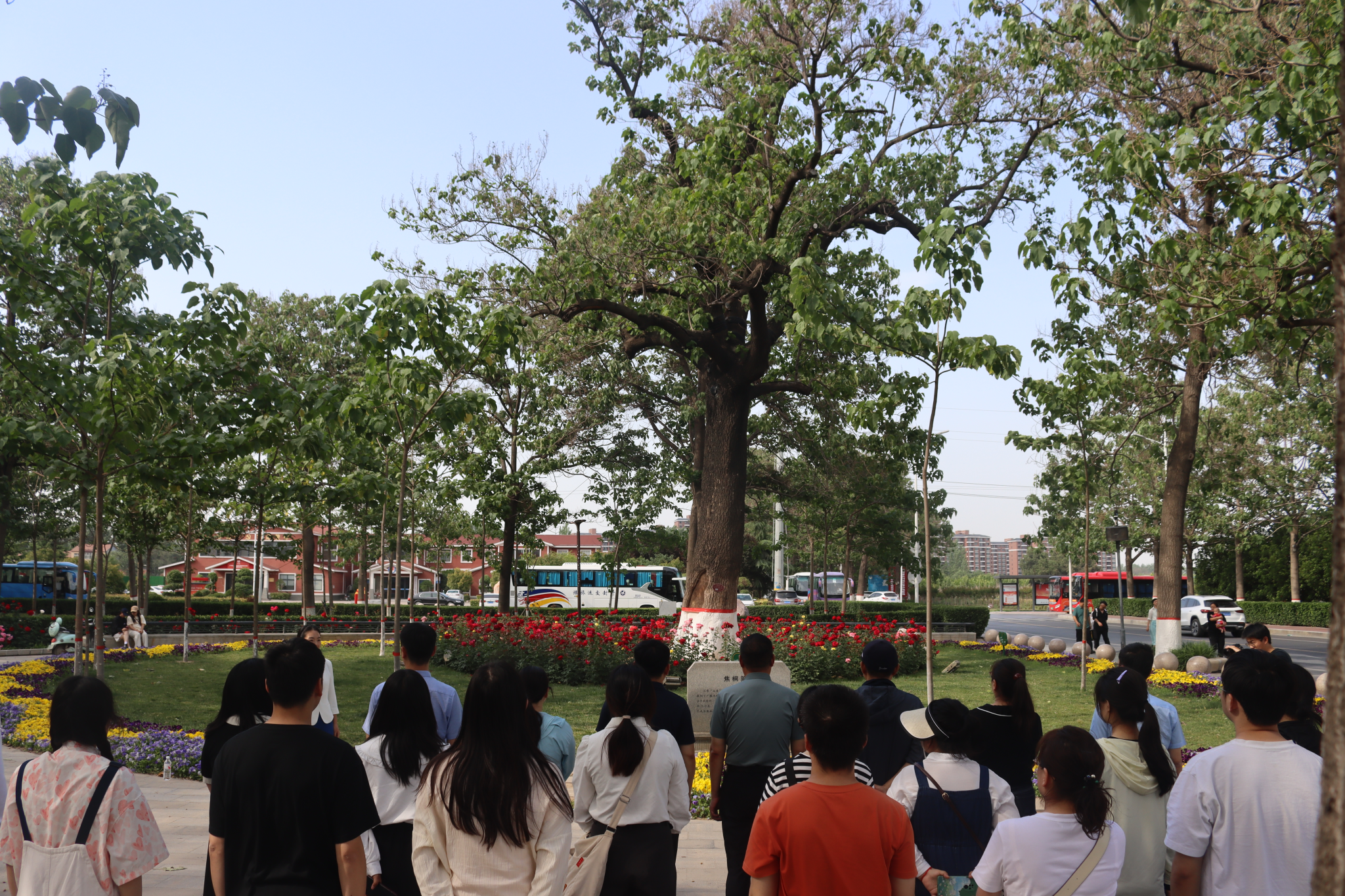 在焦裕禄同志栽种的泡桐树下,全体同志深切感受了当年焦裕禄同志带领兰考人民与“三害”抗争的事迹,深切感受焦裕禄同志“亲民爱民、艰苦奋斗、科学求实、迎难而上、无私奉献”的崇高精神。