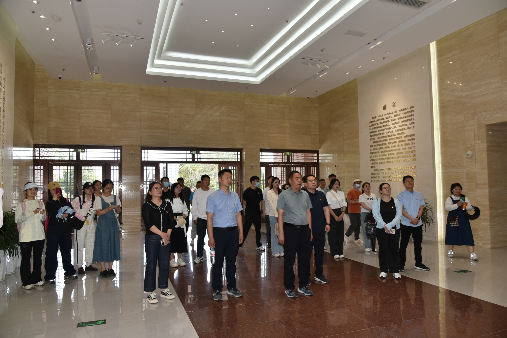在焦裕禄同志纪念馆,大家认真聆听兰考历史与焦裕禄同志的生前事迹讲解,观看展厅中的一幅幅图片和一件件实物,深刻感悟焦裕禄同志“心中装着全体人民,唯独没有他自己的公仆情怀”,凡事探求就里、“吃别人嚼过的馍没有味道”的求实作风,“敢教日月换新天”“革命者要在困难面前逞英雄”的奋斗精神,艰苦朴素、廉洁奉公、“任何时候都不搞特殊化”的道德情操。