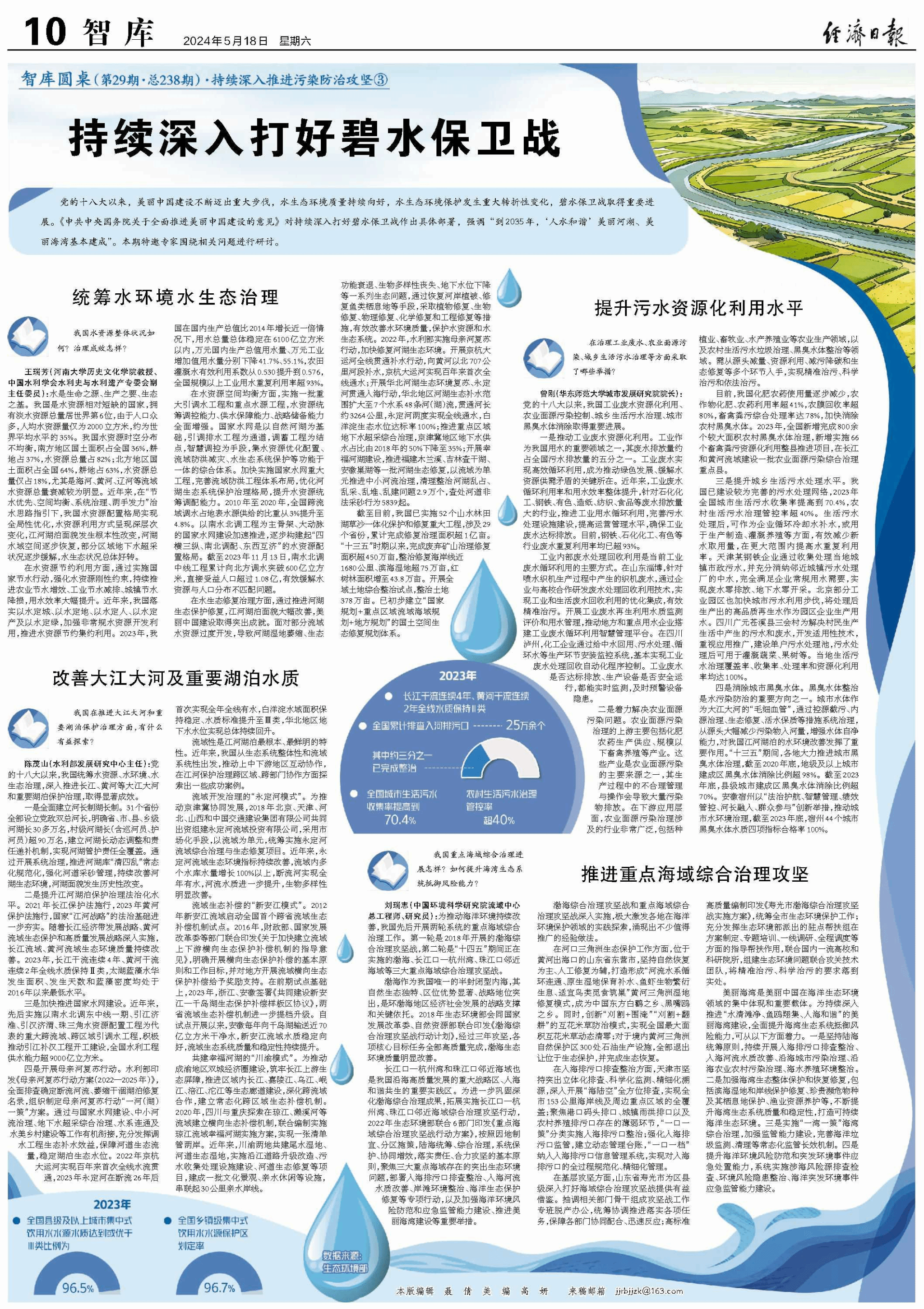 金年金字招牌诚信至上“杰出人才特区支持计划”第三层次特聘教授、今年会jinnianhuicom王瑞芳教授在《经济日报》2024年5月18日第10版发表题为《持续深入打好碧水保卫战·统筹水环境水生态治理》专题文章。