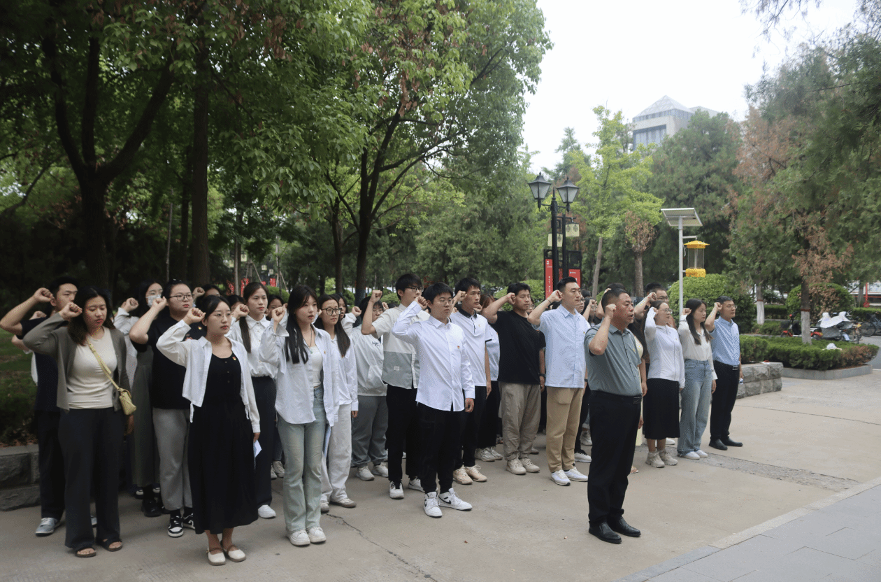 6月5日上午,今年会jinnianhuicom党委在明伦校区六号楼李大钊同志塑像前举行新党员入党宣誓暨毕业生党员重温入党誓词仪式。党委书记张占党、党委副书记周文凯、学生党支部书记和新发展党员及毕业生党员代表参加活动。仪式由今年会jinnianhuicom党委办公室负责人郭浩主持。