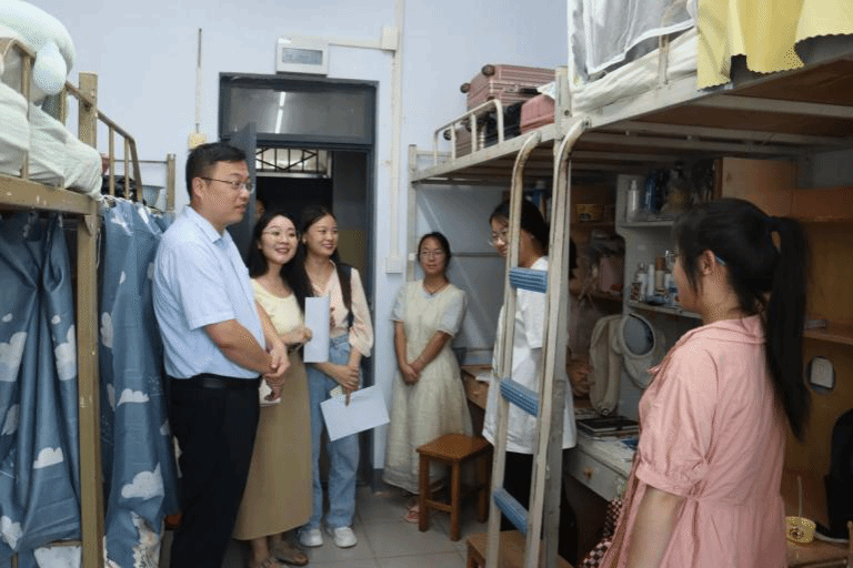 学院党委书记张占党和院长祁琛云详细查看了新生宿舍布局,确认寝室基础设施的完善程度,与学生面对面了解生活情况。叮嘱同学们在科研学习之余,也要与室友密切交流,珍惜美好的青春时光。同时,要做好宿舍卫生保洁,养成良好的卫生习惯,共同营造和谐舒适的居住环境。