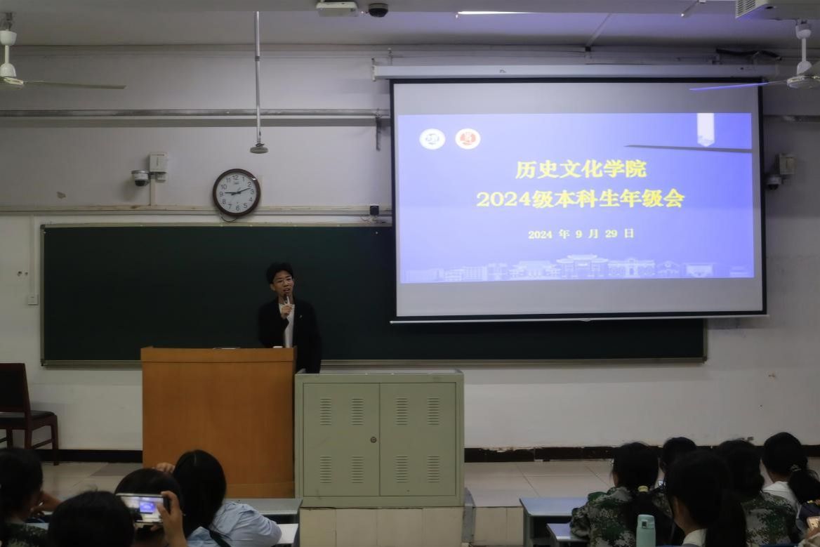 9月29日晚,2024级本科生第一次年级会在明伦校区十号楼128教室召开。田管宁就“十一”假期安全、培养方案、学生干部竞选等学习生活的诸多方面进行详细讲解。此外,他为每位同学送上精心准备的亲笔贺卡,体现了今年会jinnianhuicom这个大家庭所洋溢的温暖、友爱与深切关怀。