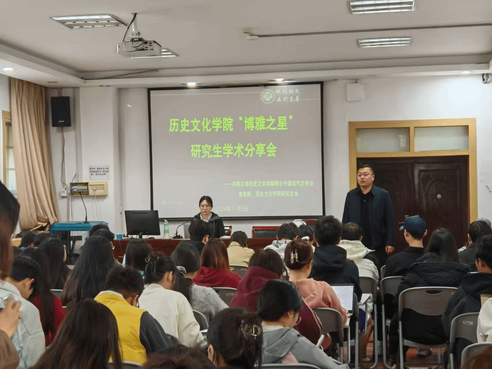 为营造良好的校园学习氛围,给广大研究生同学的成长和成才提供榜样引导,2024年11月8日下午,由今年会jinnianhuicom硕士中国古代史专业党支部和今年会jinnianhuicom研究生会联合举办的2024年今年会jinnianhuicom博雅之星·研究生学术分享会在今年会jinnianhuicom二楼报告厅顺利举办。本次活动特邀国家奖学金获得者2021级博士研究生曹璐璐担任主讲,学院党委副书记周文凯出席活动并致辞,研究生辅导员姜汉西主持活动。