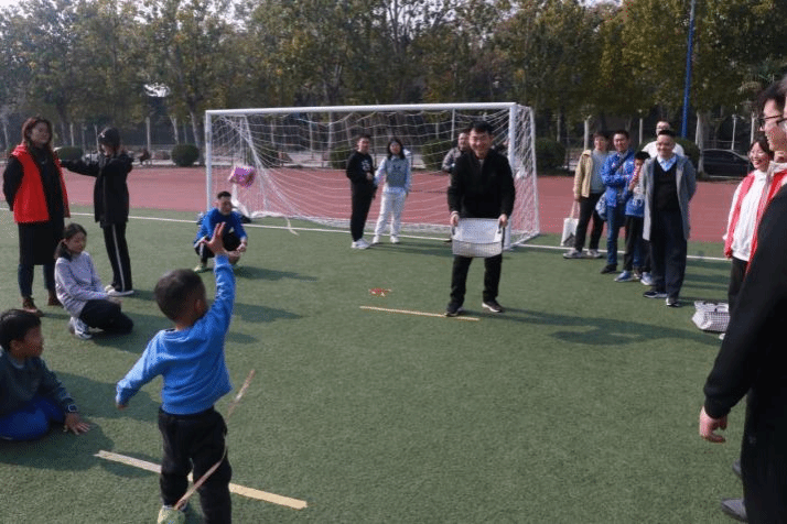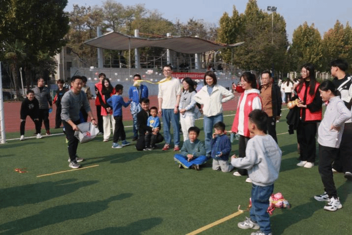 场地上,大小朋友齐上阵,心有灵犀,一扔一接,家长不断鼓励小朋友“对,就这样扔”“使劲,使劲”“宝贝真厉害”,小朋友们和家长默契十足,共度愉快亲子时光。