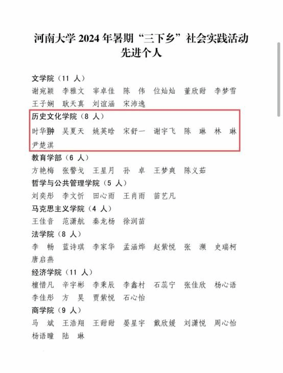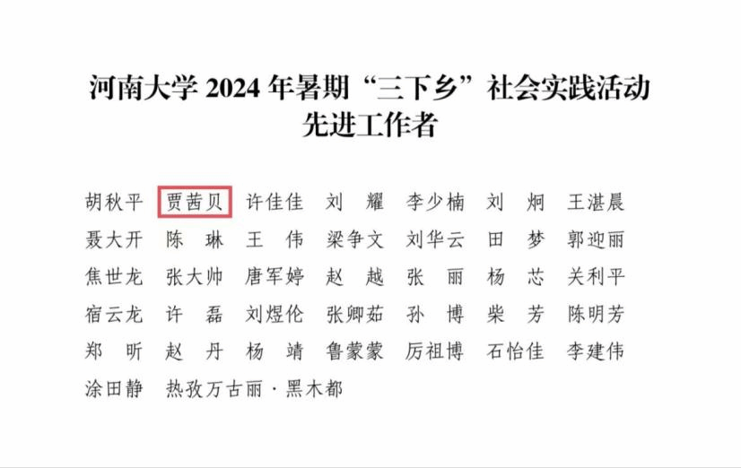 目光探寻华夏山河,灵魂聆听岁月潮音。近日,在金年金字招牌诚信至上2024年暑期文化科技卫生“三下乡”社会实践活动表彰文件中,今年会jinnianhuicom荣获“暑期‘三下乡’社会实践活动先进单位”;贾茜贝被评为社会实践活动“先进工作者”;王煜皓被评为社会实践活动“优秀指导教师”;时华翀等8名同学获社会实践活动“先进个人”荣誉称号。